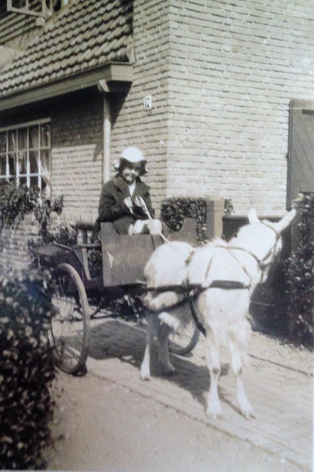 Ezel Constantijn had een vriend, een enorm eigenwijze, witte Hollandse bok. Hier voor het karretje van dochter Doralisa.