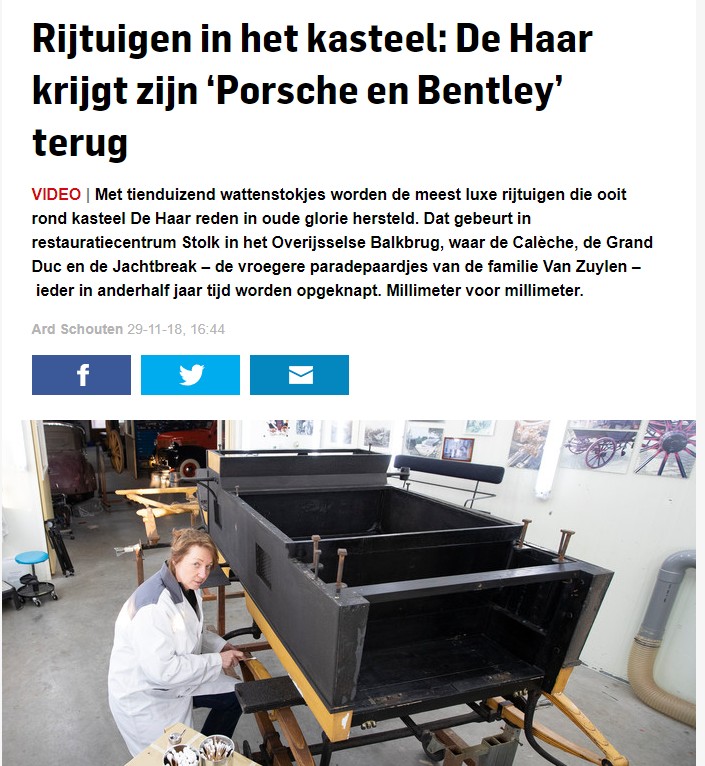 Het Algemeen Dagblad gaf op 29-11-2018 met een leuk artikel en een video aandacht aan het lopende project voor Kasteel de Haar. Het heet: Rijtuigen in het kasteel: De Haar krijgt zijn ‘Porsche en Bentley’ terug. Lees het hele artikel en bekijk de video door te klikken op deze link: https://www.ad.nl/…/rijtuigen-in-het-kasteel-de-haar-krijg…/