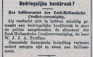 In 1922 gaat het echter faliekant mis. De politie rekent hem in en Willem wordt tot gevangenisstraf veroordeeld na een frauduleus bankroet. Hij had de lieve som van ruim 1,7 miljoen gulden van de NV Zuid-Hollandsche Credietvereeniging verduisterd. Vlak voor zijn faillissement probeert hij nog zijn garage en twee automobielen te verkopen, wat de rechter hem al helemaal niet in dank afneemt. De rechtzaken over het faillissement duren tot in 1925. Willem woont even aan de Wassenaarscheweg 39 en is dan ‘zonder vaste woon- of verblijfplaats’ tot hij in 1928 opnieuw opduikt voor het verstrekken van nieuwe hypothecaire leningen voor de kerk. De vos had zijn streken duidelijk niet verleerd. Ondertussen is Margaretha overleden en hertrouwt Willem met de 27 jaar jongere Christina Francisca Maria de Fraiture, om zich in 1935 vanuit Brussel weer in te schrijven in Den Haag, en er nog altijd kinderloos als bijna honderdjarige in het bejaardenhuis te sterven.