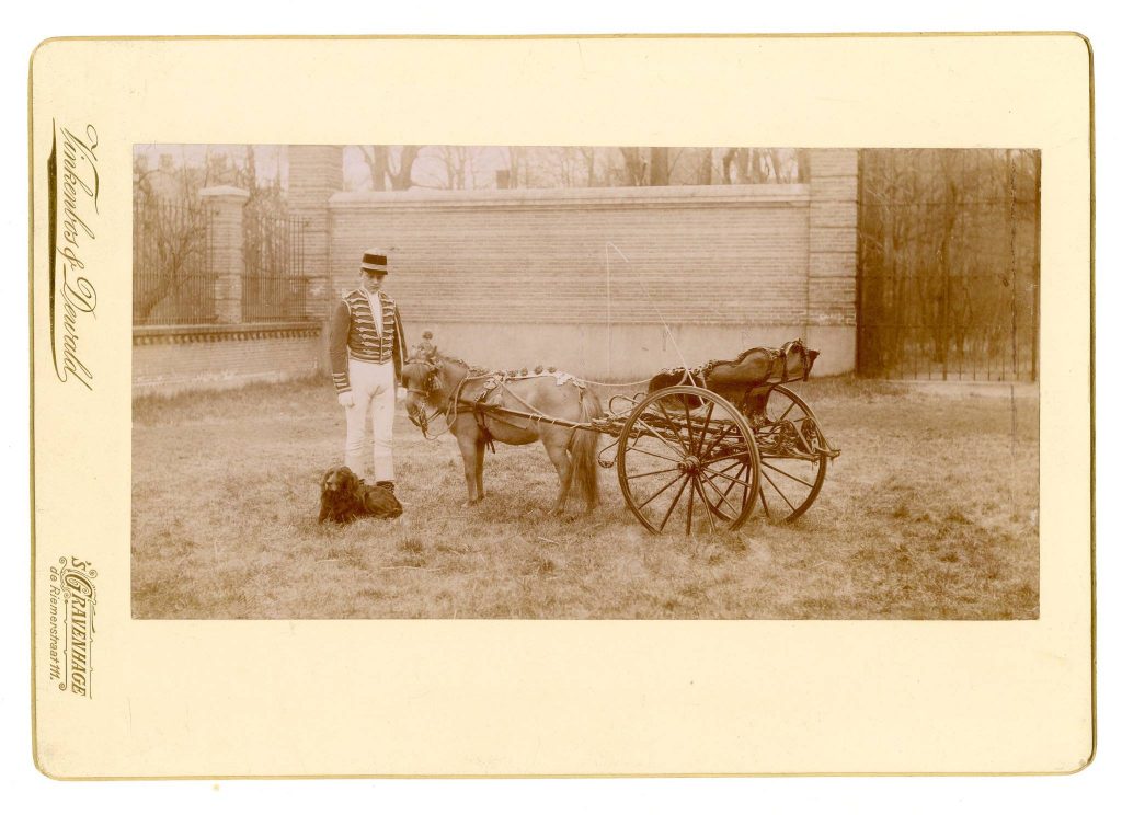 Het prinsesje kreeg deze Westfriese ponysjees voor haar vijfde verjaardag. Ze maakte haar eerste rit met pony Baby meteen op die feestdag, 31 augustus 1885. De oude foto uit het Koninklijk Huisarchief zou van die datum kunnen zijn, gezien het versierde tuig.