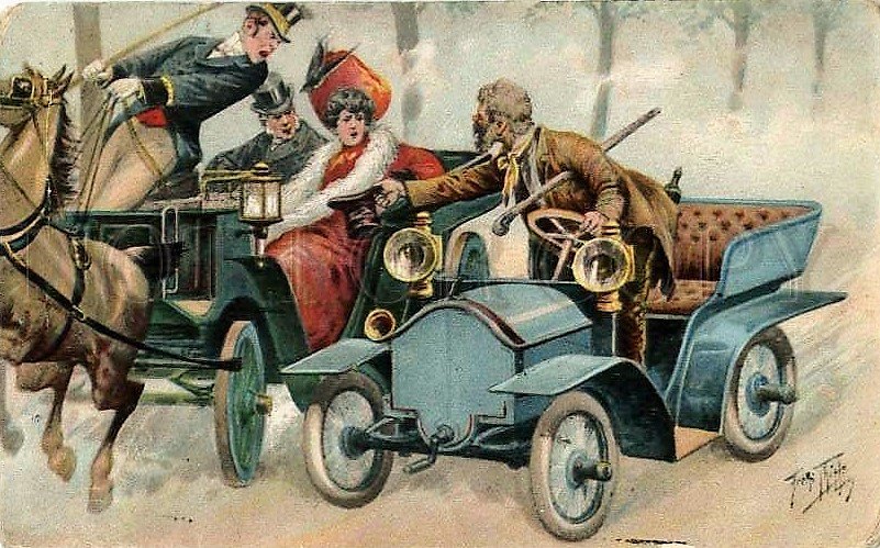 “In de rue de Vaugirand reed een automobiel tegen een huurrijtuig, dat niet spoedig genoeg kon uitwijken. Het gevolg van die aanrijding was, dat de ingezetene van het rijtuig op de straatstenen neerkwam; doch de koetsier beschreef in zijn val een halve cirkel en kwam in de automobiel te zitten, rechtop en met de zweep nog in de hand”, bericht de Graafschap-bode in 1899 over een curieus ongeval te Parijs.