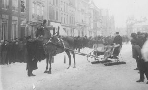Op de verkoping is ook een Amerikaanse slede met tuig en bellen, en van die slede is een foto bewaard gebleven: op de Vismarkt in Groningen, ergens rond 1900, met Klaas Tiktak op het koetsierszitje. Als herinnering aan het paardentijdperk van weleer.