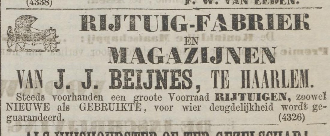 Bronnen: ‘Beijnes, een eeuw van arbeid’, jubileumuitgave door Henri Asselberghs, 1938. ‘Geschiedenis en Beschrijving van Haarlem’, door F. Allan, 1888. Beeld: Nationaal Rijtuigmuseum. Lees meer over de autohistorie van Beijnes op conam.info