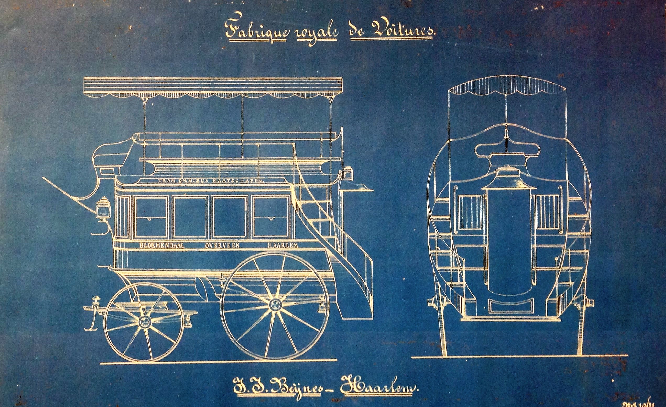 Blauwdruk van een omnibus, al voorzien van Hollands opschrift.
