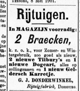 Drie generaties Gerrit Jan Donderwinkel dreven een fabriek van luxe rijtuigen. Niet vanuit een prestigieuze stad als Den Haag of Haarlem, maar vanuit het halfvergeten provinciestadje Doesburg. Het verhaal van deze rijtuigfabriek heeft twee bijzondere kanten: als exporteur naar Nederlands Indië en als bouwer van de Gelderse kapkar. Zo’n kapkar staat in het Nationaal Rijtuigmuseum in Leek.