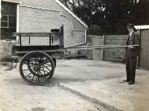 Wat hebben ‘den bekenden fistelboer’ Klaas Ursem uit Nibixwoud en Cornelis Kluun ‘sjouwerman te Binnenwijzend’ met elkaar gemeen? Ze kwamen allebei in 1936 in de Nieuwe Hoornsche Courant nadat ze met hun dresseerkar waren aangereden door een automobiel. Het begrip ‘dresseerkar’ is relatief jong. Was het aan het einde van de 19e eeuw nog een kar zuiver om paarden af te richten, na de eeuwwisseling is dit rijtuigje in opkomst. Dan is het vrijwel gelijk een typeaanduiding, wanneer er te koop staat ‘een bijna spiksplinternieuwe hondensjees, model dresseerkar’, weten de lezers van het Nieuwsblad van het Noorden in april 1907 precies wat de verkoper bedoelt. Vanaf de jaren ’20 vooral in gebruik als melkkar en als wagentje voor de gewone man. Eind jaren ’40 vooral op luchtbanden.