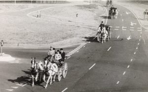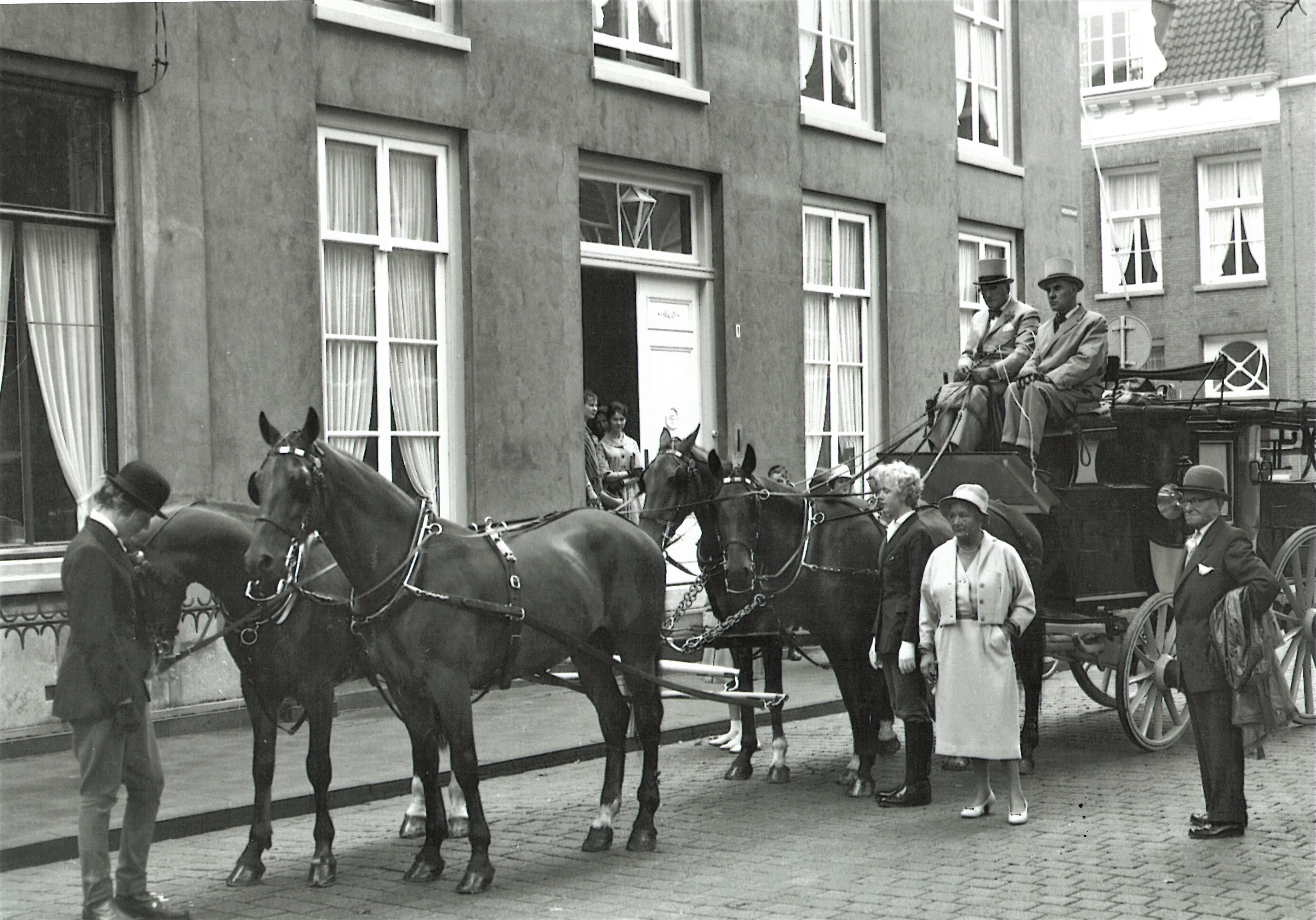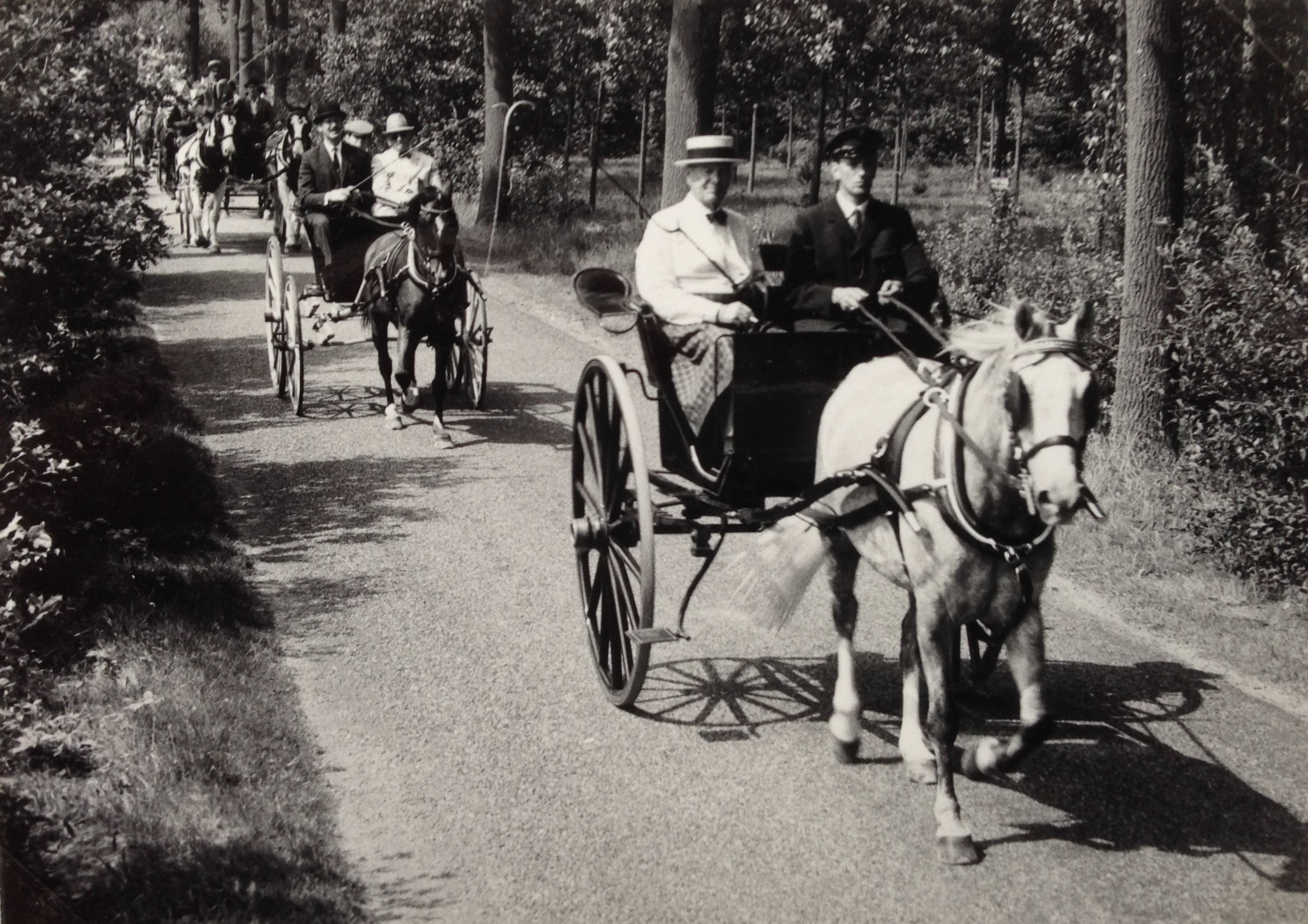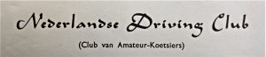 “Nijmegen – Op donderdag 12 mei zal in de stallen van de stoeterij Hundisburg op het landgoed Brakkenstein bij Nijmegen een bijeenkomst worden gehouden met de bedoeling een Driving Club in Nederland op te richten. Tot de initiatiefnemers behoren de paardenliefhebbers Jacq. Rijks, van der Touw en Eerdmans. Zij willen een club oprichten, die zich ten doel stelt het gebruik van paarden op de weg te bevorderen. Men stelt zich voor niet op hoofdwegen te komen, maar voornamelijk van binnenwegen gebruik te maken. Houders van luxe paarden en -rijtuigen behoren tot de kring waaruit men zijn leden willen rekruteren”, aldus een berichtje in de Zierikzeesche Nieuwsbode op 9 mei 1960. Een paar dagen later verschijnt dit verslag in het Algemeen Handelsblad (13-5): “Een calèche, een authentieke mailcoach en twee jachtbrikken, alle getrokken door kalme paarden en bemand met vurige berijders, trokken gistermiddag het Rijk van Nijmegen binnen. Met die tocht over rustige binnenwegen wilde de officieel (nog) niet bestaande Driving Club aantonen dat ook op de weg nog plaats is voor het paard. Bij elkaar werd het voor de ongeveer dertig deelnemers een genoeglijke tocht die veel van de rust uitstraalde welke het reizen vroeger gekenmerkt moet hebben. De Driving Club aanschouwde vorig jaar reeds min of meer het levenslicht. Ook toen organiseerde initiatiefnemer Jacq. Rijks een dergelijke rit voor paardenliefhebbers die zich maar node neerleggen kunnen bij de verdringing van het edele ros door de auto. Dit jaar hebben de plannen iets vastere vorm aangenomen en is ook de belangstelling toegenomen. Aan de oprichting van een regelrechte vereniging is men echter nog steeds niet toe.” Twee weken later bericht datzelfde Algemeen Handelsblad opnieuw, naar aanleiding van het concours hippique in Bennekom: “Een nieuwtje bracht de rubriek 13, die zijn naam van ongeluksnummer verloochende: het was het eerste officiële optreden van de Nederlandse Driving Club, een shownummer van de bovenste plank: drie jachtbreaks, en een mailcoach, alle door vierspannen getrokken gaven een kostelijke demonstratie te zien.” Een jaar later, in 1961, treedt de club wederom op, op het concours hippique van Breda en het jaar daarop kiezen de leden een andere richting, door het maken van een tocht door Noord-Nederland met als einddoel het concours hippique in Groningen.