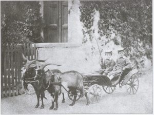 In het rijtuig van links naar rechts: Nancy Brandt, gouvernante Mlle Guathay ‘Mum’,