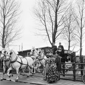 1968, vertrek van de Engelse postkoets van Van Gend & Loos bij het