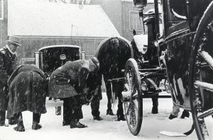 Winterse toestanden voor de stalhouderij op het Pieterskerkhof in Utrecht, 1978.
