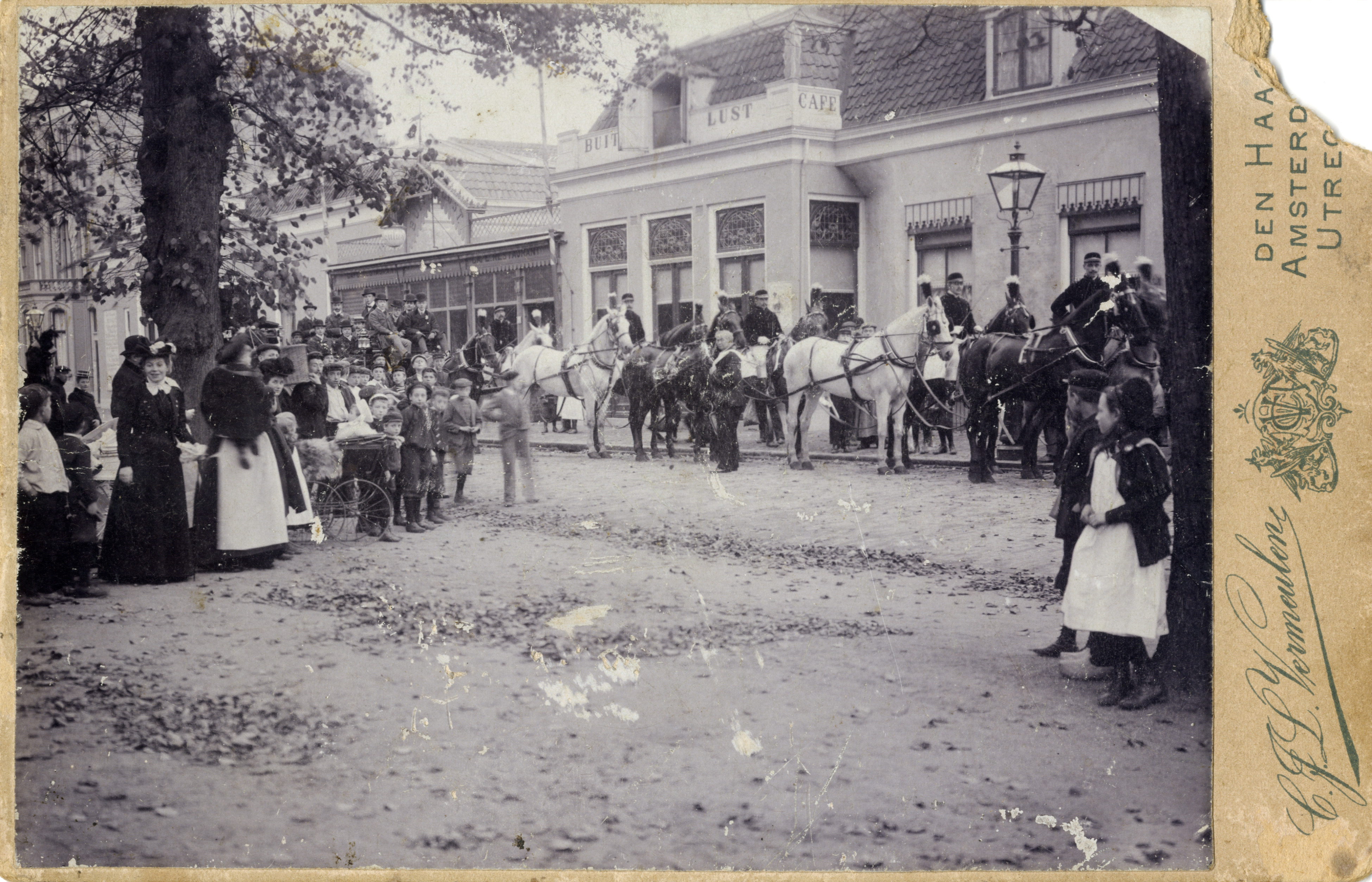 van Schoonhoven-Buitendyk voor het Utrechtse café Buitenlust staan. Ergens rond 1890.