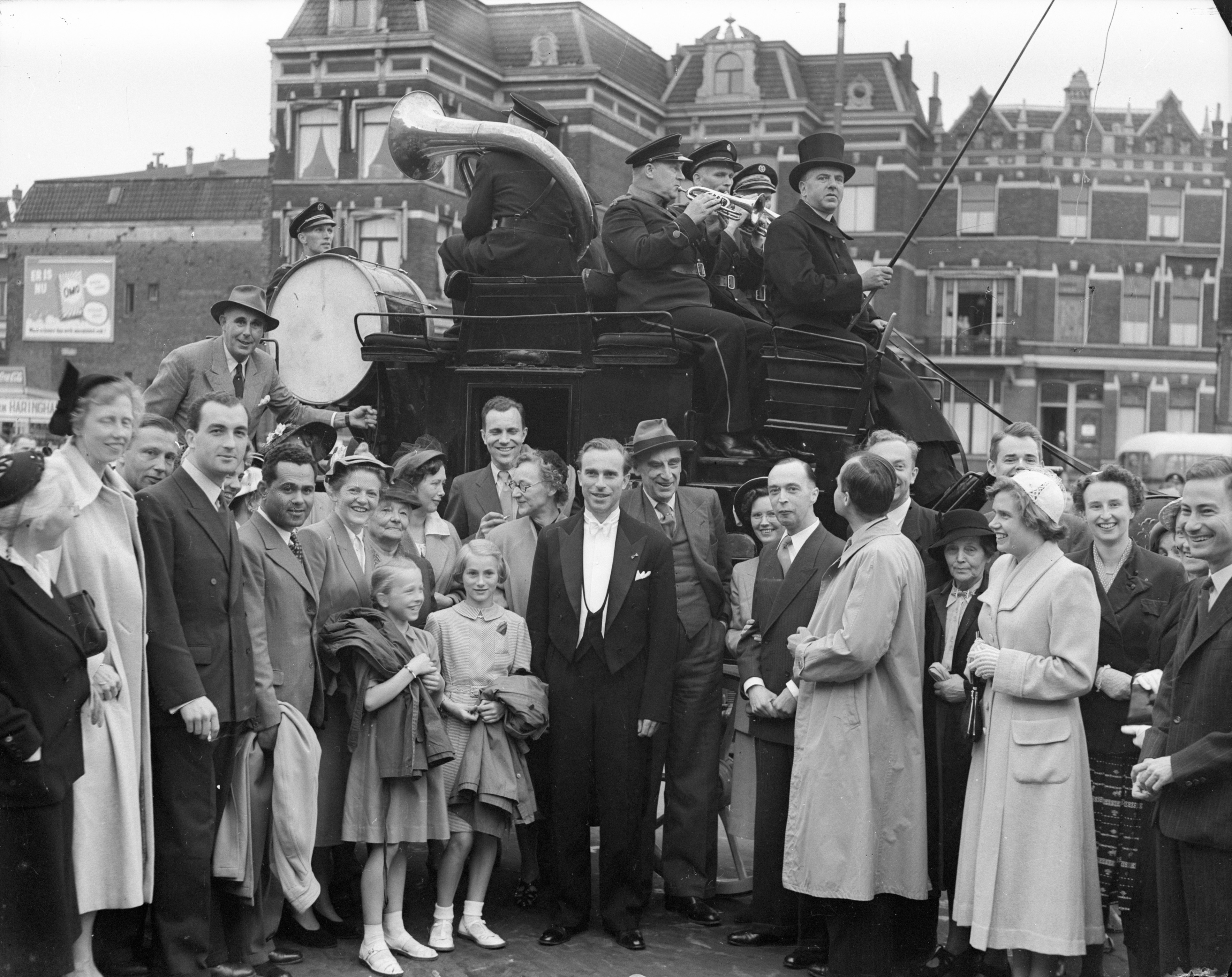 1952: het gezelschap rond kinderarts prof. Veeneklaas op het