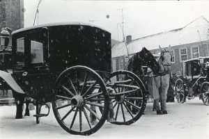 Terug naar het artikel in De Tijd, van juli 1956: “Nooit is een bruidje, in een wolk van witte tule, zo aanbiddelijk charmant als wanneer zij afdaalt uit het kleine glazen paleisje, terwijl haar voetje het smalle stepje zoekt. De meest uitbundige chroom-slee is een logge duikboot, waaruit een bruidje slechts met gekromde rug en opeengepakte rokken kan stappen. Dit moet de heer Schoonhoven begrepen hebben toen hij 25 jaar geleden in het bedrijf van zijn vader stapte. Hij wist wat Utrecht past. Hij is het, die het feestelijk schouwspel op de Stadhuisbrug in ere houdt. Utrecht mag hem er dankbaar voor zijn. In dit opzicht is er in Utrecht nog niet veel veranderd: distinctie Is een begrip, dat men er nog in ere houdt. Vandaar, dat de heer Schoonhoven er niet aan denkt zijn paarden op te ruimen. Hij handelt hiermede in de geest van duizenden Utrechters, die zijn glimmend zwartgelakte koetsjes nog vele jaren voor het stadhuis hopen te zien. Dat de stalhouderij ook diensten verleent bij universitaire promoties, behoeft voor een stad als Utrecht nauwelijks betoogd te worden.”