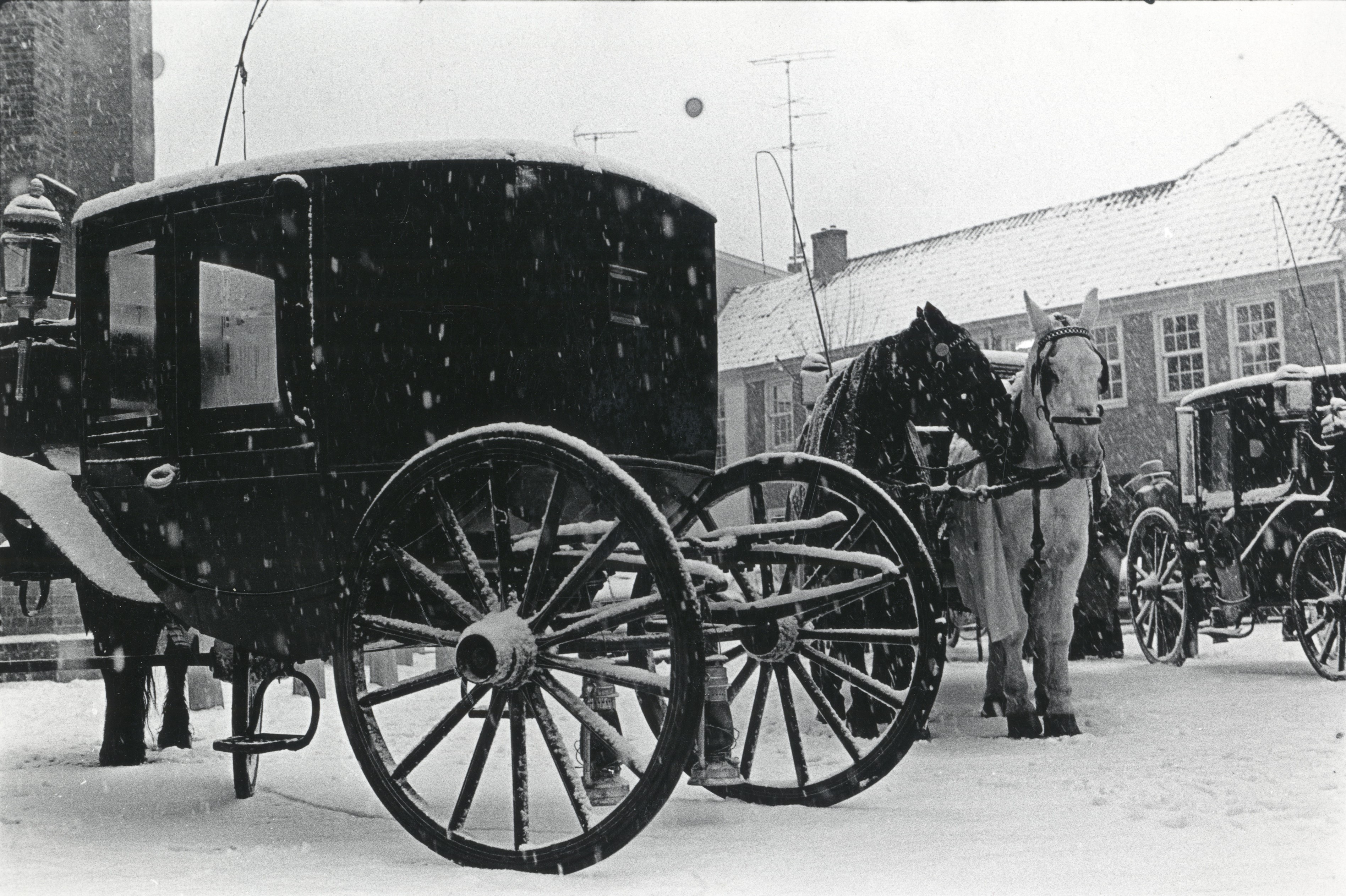 In de Keukenstraat in 1976 met wagenmaker A. Kemp die voor de stalhouderij de paarden aanspant.
