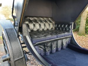 Op initiatief van de Stichting Hippomobiel Erfgoed heeft restauratie-centrum Stolk in Balkbrug de vuile vernis en smeer verwijderd, de afbladderende verf geconserveerd en aangevuld, mottengaatjes gestopt, uitgedeukt, leer ingevet en bijgekleurd, gepolijst en minuscule fragmentjes van de familiewapentjes aangevuld. We kunnen er eindeloos in detail over praten, maar de foto’s ‘voor en na’ zeggen genoeg. Kijk en geniet! Ze is de komende jaren afwisselend te zien op het kasteel in Haarzuilens en in het Nationaal Rijtuigmuseum in Leek.