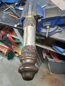 De gebutste kaplijst wordt gepolijst en gepoetst.