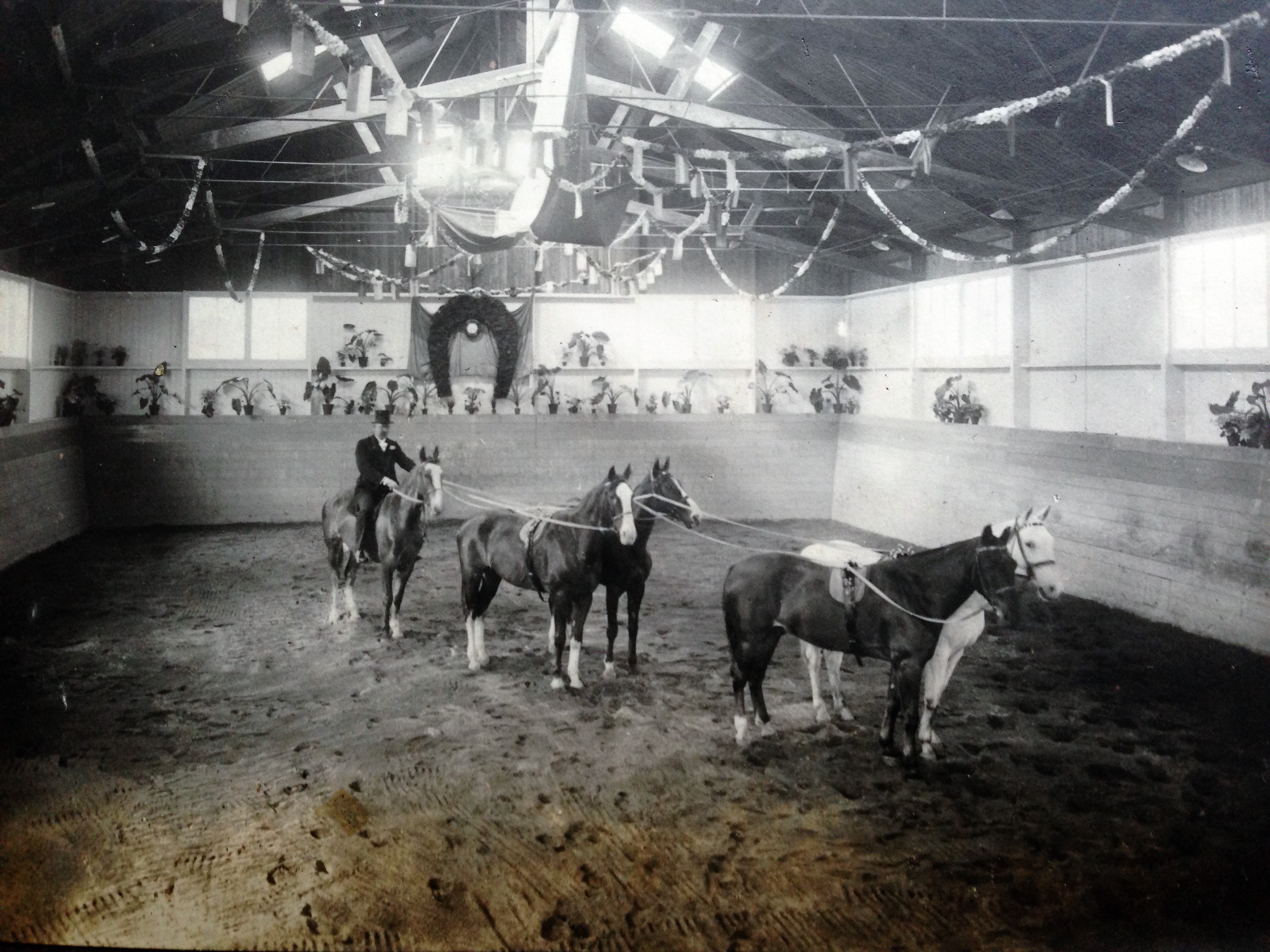 De promotie tot koetsier en het huwelijk van Gerrit en Jentje zijn redenen voor de baron om verder te investeren in de bouw van een manege, eentje die het decor is op de foto’s. Het is een opleving van korte duur. Het Paard brengt in 1931 een artikel over de stand van zaken: “De tijden, die sinds 1926 nog steeds in het nadeel van het luxe-tuigpaard gingen werken, hebben aan het mooie bedrijf, ja een der mooiste inrichtingen op hippisch gebied in ons land, een einde gemaakt. Slechts een tweetal, de bekende bonte Punch en een ander oud en trouw dienstpaard, zijn thans nog aanwezig.”