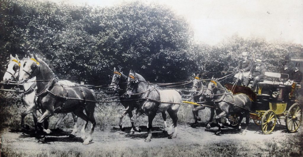 Het is interessant om te lezen dat, ondanks twee geplande verkopingen in 1926 en 1930, de schrijver van het artikel opmerkt dat in feite alles nog op zijn plaats staat: coaches, afrijbrikken, tuigen en zadels. Maar op die twee paarden na is het dus gedaan met de handelsstal. Wat er voor in de plaats is gekomen zijn Shetlanders, pony’s die dan ‘erg in de mode zijn gekomen’. “Aardige diertjes, die geen groote moeite veroorzaken. Door zelf te fokken en verdere aankopen is de collectie reeds tot een flink koppel uitgegroeid. De pony’s op Doorwerth geven als vergoeding voor wat eens geweest is aan Baron van Brakell en aan G.D. Snippe, die van kindsbeen af aan den stal verbonden is en bekend door zijn rijden op concoursen, een aangename afleiding.” De koetsier spant de pony’s in het vierspan en laat ze op concoursen zien. The show went on.