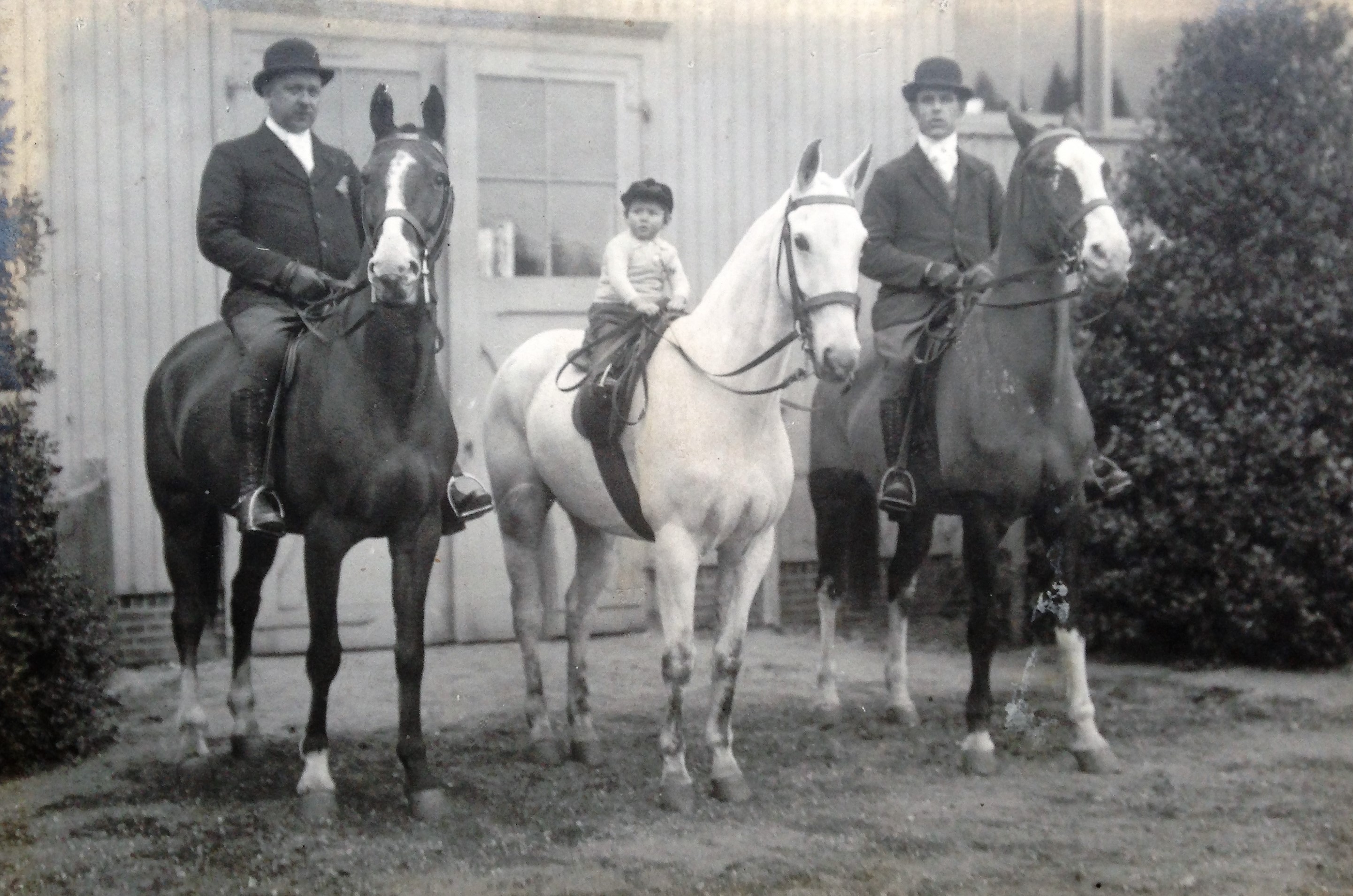 Als knechtje kan Gerrit (links) al prima op een paard blijven zitten, echt vanuit ‘het zadel’ rijden leert hij pas op zijn achttiende. In het midden zijn zoontje Henk, die echter niets met paarden zou krijgen.