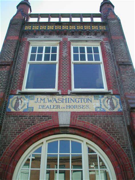 Washington heeft een prachtig gebouw aan de Theresiastraat, waar eerder het Nederlandsch Sportpark zetelde, een sportcomplex voor atletiek, wielrennen en paardensport. Gebouwd in 1896-1897 door architect J. Mutters voor de NV Sportterrein Den Haag. Een groot succes voor de atletiek en het wielrennen was het toen echter niet, want al na vier jaar werd de sportzaal omgebouwd tot manege en na een periode van leegstand laat Washington zijn naam in geglazuurde tegels boven de ingang zetten. De Haagsche Courant van 29 maart 1911 beschrijft het beeldend: “In de Theresiastraat, — waar vroeger het sportgebouw gevestigd was, — heeft thans de heer Jack M. Washington — een bekende bij Haagsche paardensport-vrienden — een manege gevestigd. Jaren lang stond ’t gebouw daar zonder bestemming, geraakte ’t tot verval, doch thans is ’t weer geheel gerestaureerd, herkent men ’t schier niet meer. Een breede entree geeft ons toegang tot een ruime vestibule met wit gepleisterde wanden en bruin graniet. Ter linkerzijde wordt een bar gevestigd, terwijl ter rechterzijde de firma J. P. Wald uit Groningen, een showroom van tuigen, zadels, enz. enz. heeft ingericht. Dan, door twee groote klapdeuren, komen wij in de eigenlijke manege. In tegenstelling met andere manege is hier om de eigenlijke rij-ruimte een omloop, van de manege gescheiden, door een vrij hooge, hellende barrière. Dan komen wij in de tuigenkamer, zeer netjes ingericht, waar in van glasdeuren voorziene kasten, de zadels, tuigen enz zijn opgeborgen. Verder komen wij. in het koetshuis, en vandaar in een stal met 12 boxen voor handelspaarden.