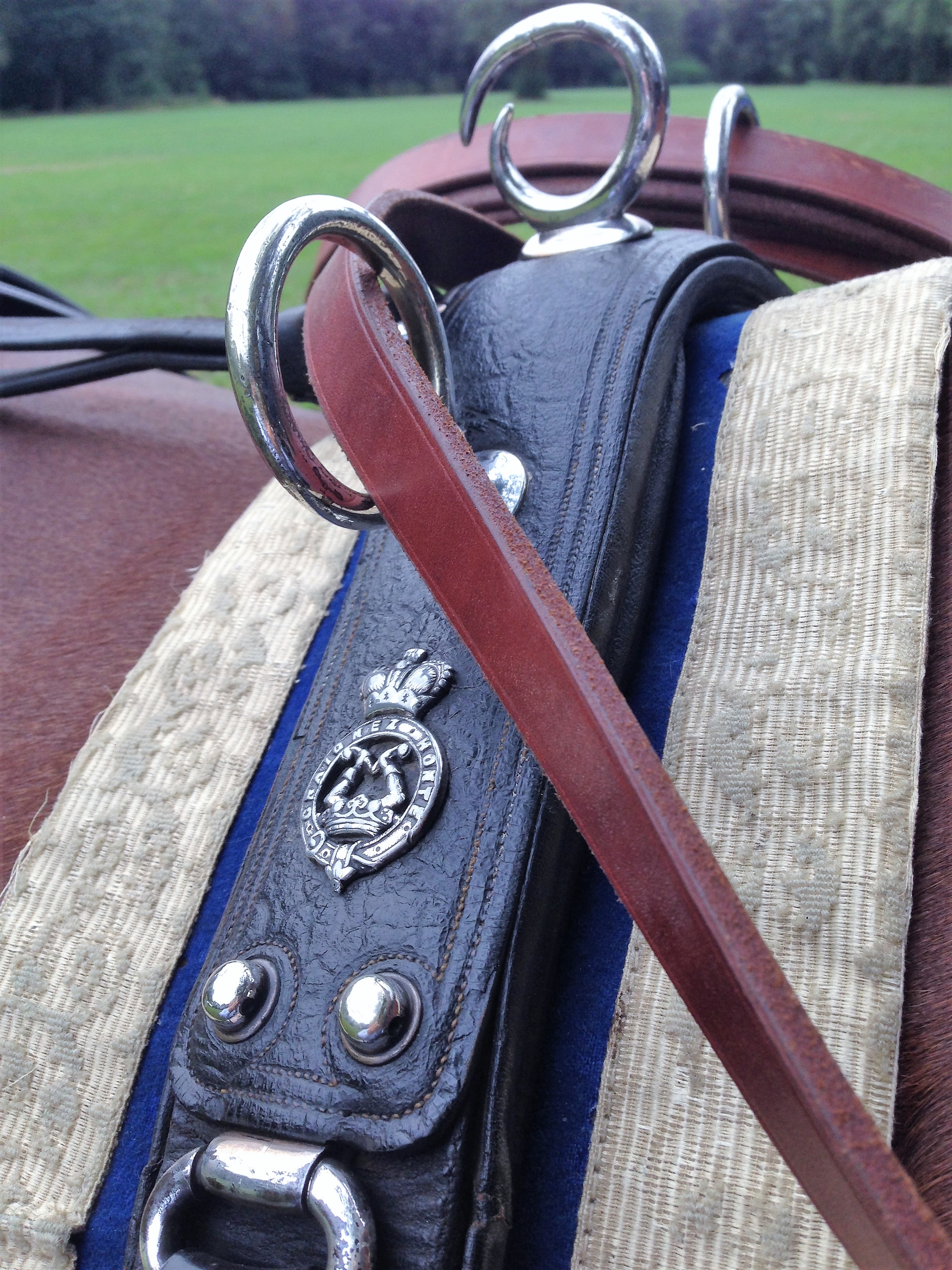 Het Bouman-tuig met het wapen van Aldenburg Bentinck, op kasteel Middachten, komt nog enkele keer uit de tuigenkast voor gebruik.