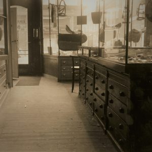 Het interieur met eikenhouten kasten, zoals dat tot de jaren ’80 bleef bestaan (foto Martijn Reeser).