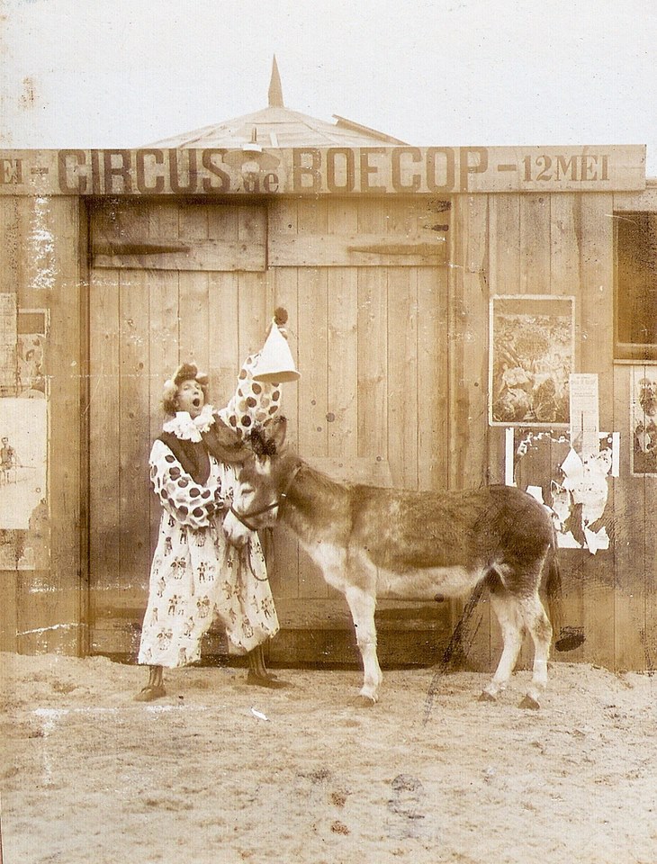Foto boven: De directeur Jules Brantsen en vuurpaard Liane, dat hij behendig door brandende hoepels liet springen.