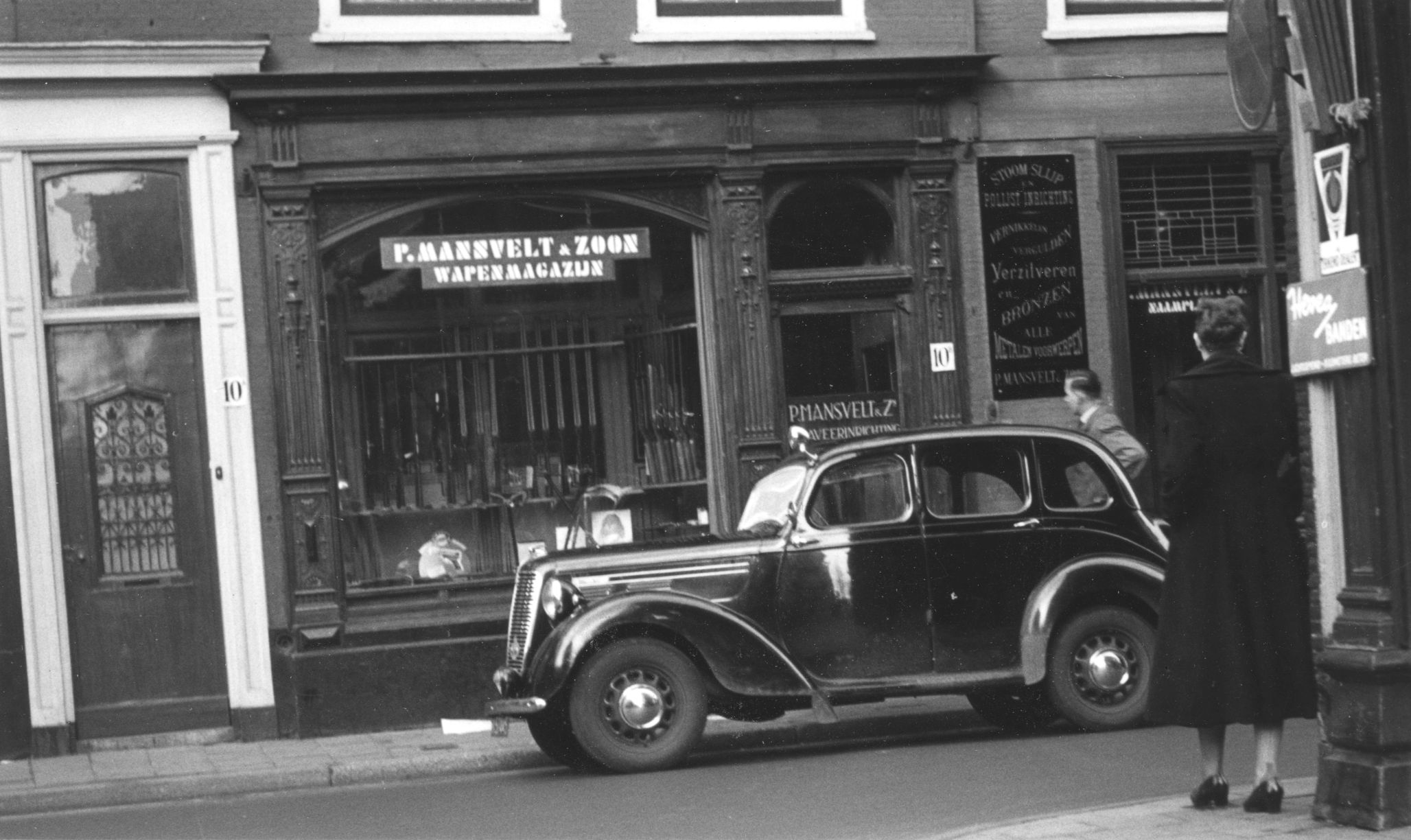 Vanuit de Hooistraat kijken we naar de winkel van Mansveld & Zoon in 1951.