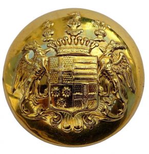 Op oude koetsierslivreien zitten ze soms nog. Knopen met daarin een familiewapen geperst of gegraveerd. Wie het zich anderhalve eeuw geleden kon permitteren liet ze maken voor het uniform van zijn huispersoneel: de koetsier, de lakei of huisknecht of de jachtopziener. Op de knopen van het dagelijkse pak voldeed een zogenaamd helmteken, een simpele uitvoering van het wapen. Of een kroontje, waarbij je aan het aantal parels kon zien welke adellijke titel iemand had. Voor het ‘galonlivrei’, dus vol ornaat zoals bij een huwelijk of een andere indrukwekkende toestand, zaten er op het pak grotere knopen met het wapen in alle tierelantijnen. Had iemand wel het fortuin voor huispersoneel, alleen geen familiewapen, dan kwamen zijn initialen op de knoop te staan. Het was een subtiel visitekaartje.