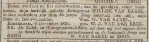 Het overlijden van de grondlegger in het Alg. Handelsblad 13-12-1851.