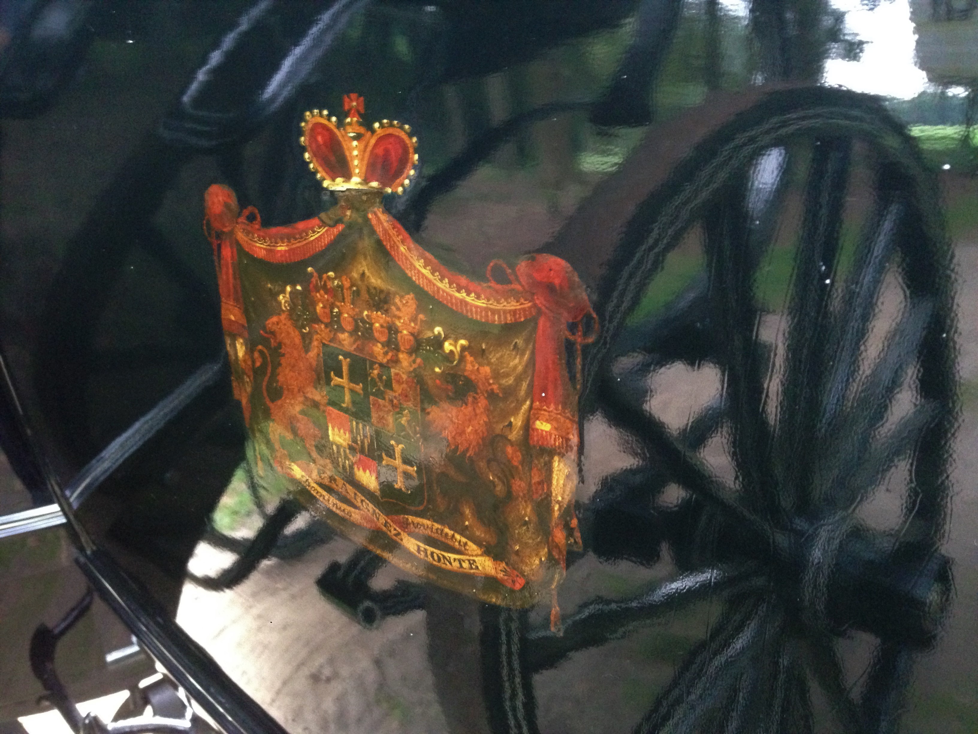 Op de portieren van de landauer is het wapen aangebracht met de kwartieren van Aldenburg Bentinck en zu Waldeck Pyrmont. Het tuig is gemaakt door Bouman aan de Denneweg in ‘s-Gravenhage.