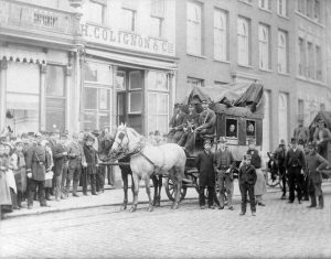 Het moet nogal wat geweest zijn om levensgevaarlijk gewond te zijn en al na drie dagen een dankbericht te moeten zetten. De plicht voelde blijkbaar zwaar. Die bewuste Sneltjes was overigens de apotheker in de Nijmeegse Grotestraat. In het Regionaal Archief in Nijmegen vinden we iets meer over Wilhelmus Loomans, geboren in 1835 in Nijmegen en later wonend aan de Bloemerstraat aldaar, waar hij in 1880 stierf, dus negen jaar na zijn ongeluk. Hij was van beroep postiljon, later ‘conducteur’ van de diligence Nijmegen-Arnhem. En in het archief is zelfs een portret van Willem in uniform en met posthoorn.