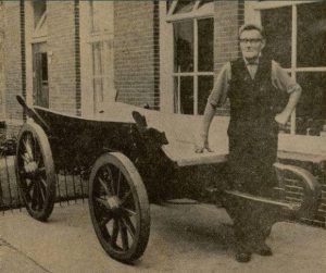 Sybren leverde zijn laatste hooiwagen rond 1950 af en zijn laatste houten kruiwagen vijf jaar later. De Tweede Wereldoorlog bracht nog wel extra drukte, maar de omschakeling was al in de jaren dertig begonnen. En zo maakte hij hooislepen en wagens op luchtbanden, cabines voor vrachtwagens, een ijs-auto en een politieauto voor Sneek, een veeauto en alles wat maar rijden wilde. Sybren Steunebrink was een vakman van de oude stempel. Wielen waren zijn grote liefde. “Om nieuwe wielen te maken heb je vakkennis voor nodig. Ze moeten goed rond zijn en niet slingeren.” Voor elk van zijn drie dochters heeft hij een wiel gemaakt, als herinnering aan het oude vak.