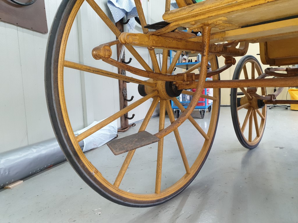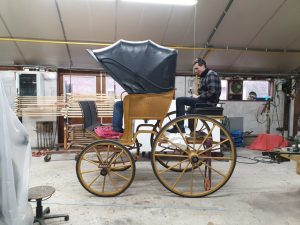 Wanneer de veren zijn ‘opgesmeed’, zetten de mannen het rijtuig weer in elkaar. Bas mag op het knechtenbankje gaan zitten om te kijken welk effect dit heeft. De wagen hangt, met alleen belasting achterop, niet langer achterover. Dat ziet er beter uit en veert ook beter voor die ene keer dat de Napoleon straks weer over de paden van Kasteel de Haar rijdt. Het was een lastige klus, maar inmiddels is de aandacht bij Stolk al weer getrokken door een nieuw probleem: de kap van de Napoleon is er rampzaliger aan toe dan vooraf ingeschat, door muizennesten, houtwormgaatjes en mottenvraat; een hele dierentuin heeft in de afgelopen eeuw in die kap gewoond.