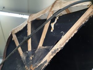 Kijkje in de kap: de ‘hemel’ hangt los van de spanten.