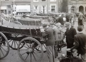 Ook de Boerenwagendagen die elders in het land volgen gaan volgens een gelijk concept: de club organiseert een of twee bussen waar de leden mee afreizen naar een dorp waar de lokale boeren en hun wagens zijn opgetrommeld. Het plezier komt zo van twee kanten. In 1948 in Meerkerk, 1949 naar Noord-Holland, in 1950 de kop van Overijssel, 1951 in Gorinchem, 1952 Laren, 1953 ringrijden in Delft, 1954 Brakel, 1955 Beusichem. In die jaren verandert de dag geleidelijk in het organiseren van een allegorische optocht, zo trekt in het centrum van Laren een bonte stoet voorbij met fanfare en de postkoets -met achtspan- van restaurant In ‘t Gemeste Schaap, van Ter Maten in Den Haag. Maar het is nog altijd waardevol wat de leden van de club te zien krijgen: een aangespannen nettenwagen of zoals in ’55 in Veere een rij van kapkarren en kapwagens. Van de dag in Ommen is een leuk filmpje gemaakt (klik om te kijken).
