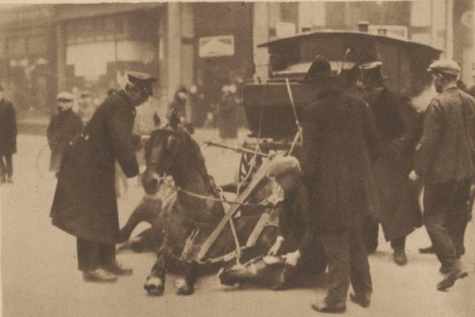 De wagen is in juli 1939 vervangen door een automobiel. De mogelijk nekslag is een publiekelijk debacle in januari dat jaar: “De gevangeniswagen van Arnhem, die in den volksmond de Statendam wordt genoemd, omdat er ook vier pijpen op staan, kon de vorige week door de gladheid op het Land van de Markt niet verder, daar de paarden waren gevallen.” (Arnhemsche Courant 19-1-1929.) Het ziet er dramatisch uit met twee paarden die zijn uitgegleden en wanhopig proberen om overeind te komen.