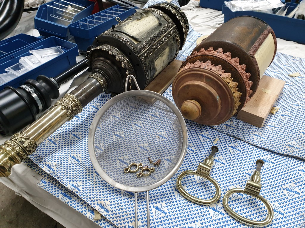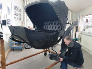 We mogen alvast een exclusieve ‘sneak preview’ laten zien van de Calèche van Kasteel de Haar. Want dit spektakelstuk hangt inmiddels al weer in nieuwe riemen. In het afgelopen half jaar is de restauratie een beetje ongemerkt verlopen, deels omdat dit weliswaar véél grotere rijtuig wat lijkt op de Grand Duc en deels omdat de schade meeviel. Bij de Calèche bladderde de verf er niet af, alleen was het rijtuig vooral intens smerig.