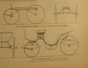 Op de wereldtentoonstelling in Parijs in 1878 zijn twee Russische rijtuigen te zien: de egoïste, een drafwagentje voor één persoon en de drowsky. Het toonaangevende Franse vakblad Le Guide du Carrossier publiceert in 1883 het ontwerp van een drowsky, geleverd door de gebroeders Markoff uit Moskou. De uitgever legt uit dat het in feite een ordinaire milord is met als bijzonderheid de bevestiging van de lamoenbomen en trekpunten aan de uiteinden van de vooras. Het rijden met een zogenaamde ‘duga’ maakt het Russisch. Dit is ook hoe moderne schrijvers als Jean Louis Libourel (2005) en Andres Furger (2003) van latere boeken over rijtuigen een drowsky zien, als een kleine milord of victoria, eigenlijk te smal voor twee personen.