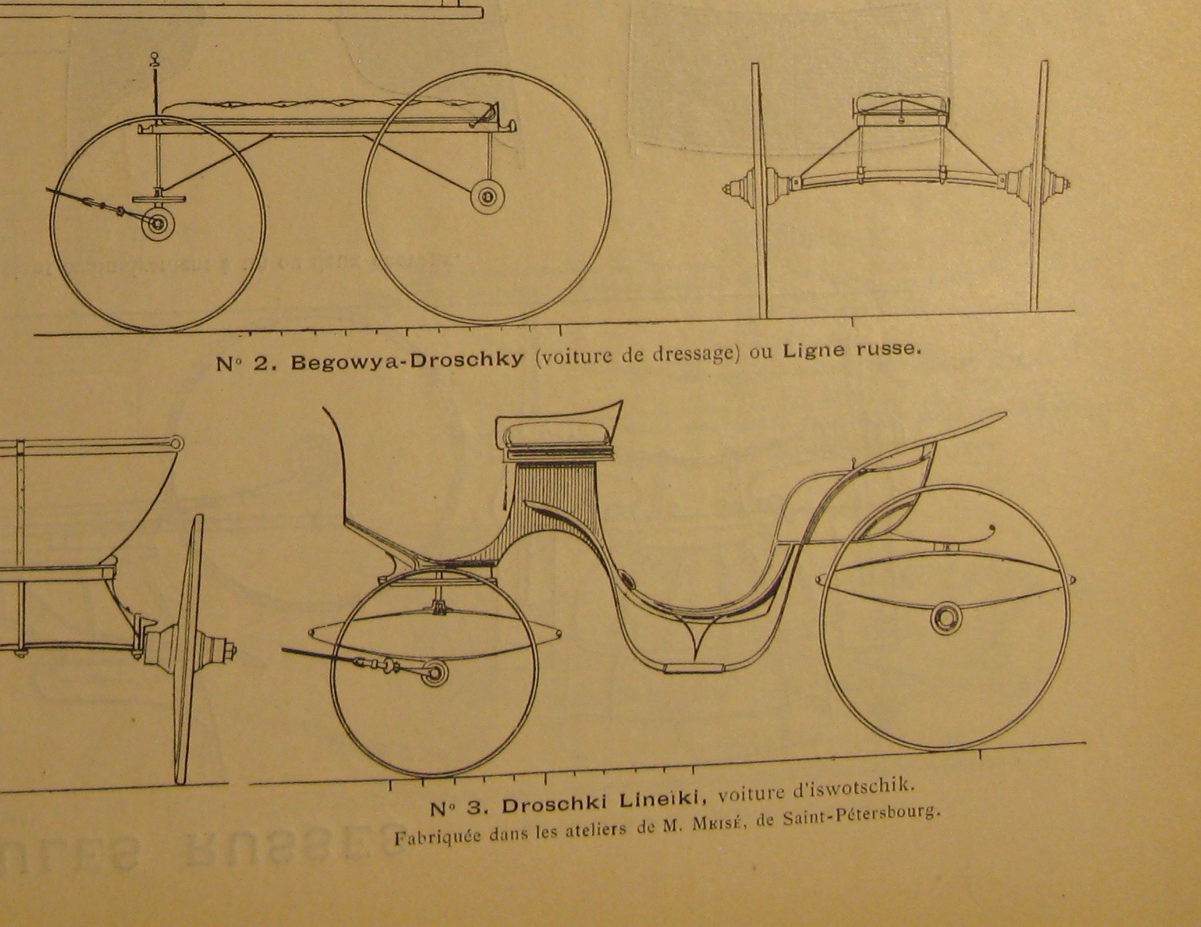 Deze ‘plank op wielen’ ontwikkelt zich aan het einde van de 19e eeuw tot de Russische versie van de sulky, waar Graaf Orloff zijn befaamde dravers voor laat lopen. Tegelijkertijd is er de drowsky als huurrijtuig en die verandert in de tweede helft van de 19e eeuw onder invloed van de Franse mode in een lichte victoria.