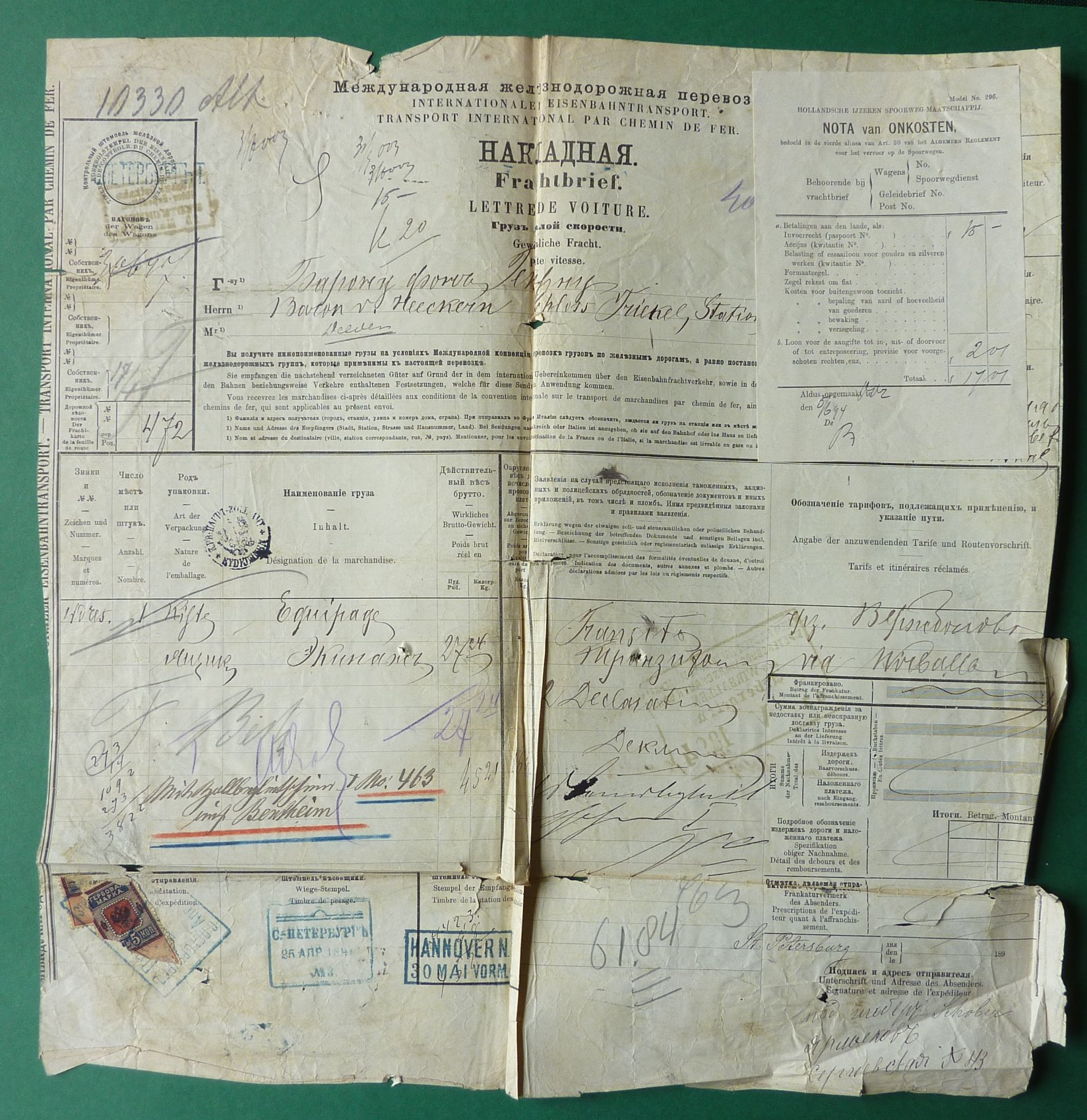 De vrachtbrief vermeldt dat de ‘equipage’ van Twickel op 25 april is verzonden
