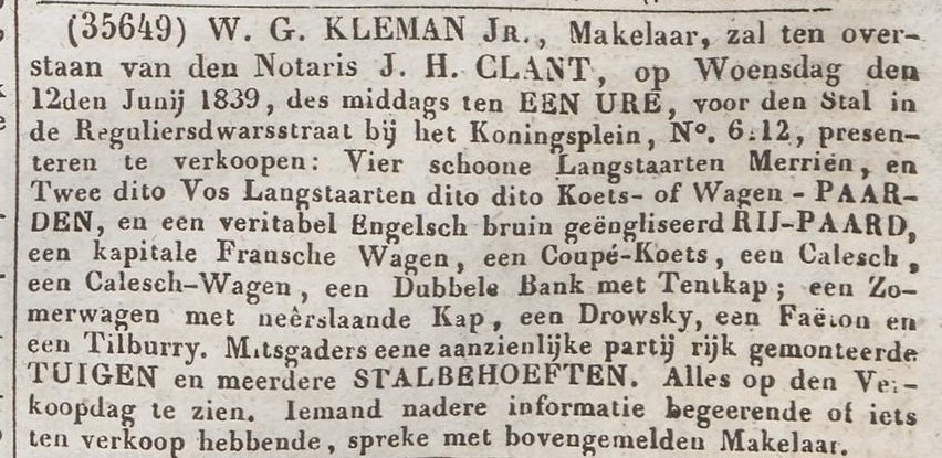 Dagblad van ’s Gravenhage 27-6-1836; Rotterdamsche Courant 4-8-1836.