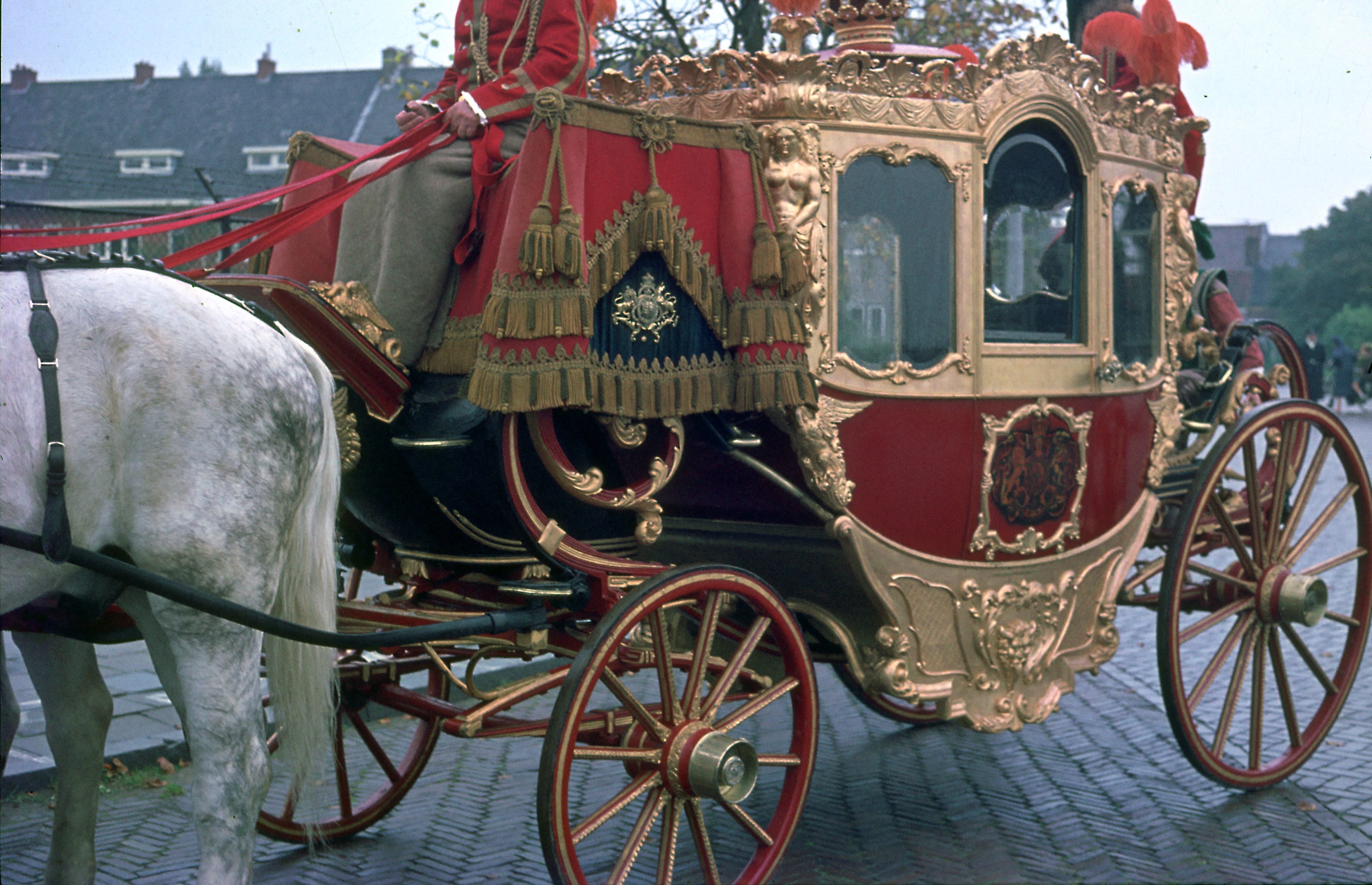 Dat de twee hofkoetsen, waarin in de eerste de prins en zijne gemalin en in de tweede zijn gevolg plaats nemen, het glanspunt van de overigens zeer schitterende optocht zullen zijn mag gerustiglijk worden afgeleid uit het feit dat voor de prinselijke koets minder dan acht vurige schimmels zullen worden gespannen. Aan den stal Nienhuis zal de eer te beurt vallen beide rijtuigen te mogen rijden.” Geen keizerlijk rijtuig dus, evenmin een koninklijke, want ook van ‘ons Hof’ is te hoog gegrepen. Wat wel lukt is om de gouden koets van het Leidse collegium te kopen en in Utrecht is een ‘keurige staatiekaros’ te huren bij de rijtuigfirma H.B. Gielen. Allemaal op kosten van -waarschijnlijk vader- Tjarda van Starkenborgh. Wat ook slaagt is een bijzonder galatuig. Tubantia meldt op 10 april: “Door H.M. de Koningin is voor het galahofrijtuig van de maskerade, voorstellende den intocht van Prins Willem IV in Groningen, bereidwillig een volledig galatuig voor acht paarden afgestaan, terwijl twee stalknechts uit de Koninklijke stallen beschikbaar zullen zijn.” Die laatste twee knechten mochten met een stel loeizware tuigenkisten van en naar de trein Den Haag-Groningen sjouwen.