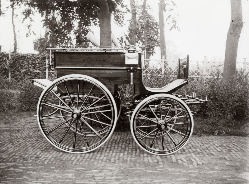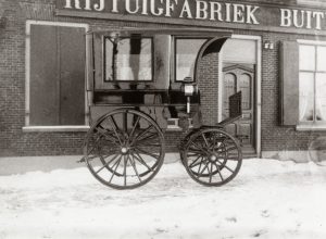 Het meest succesvol zijn echter Jan (1831-1913) en Stephanus (1859-1905) die ‘halfweg Utrecht de Bilt aan de Stichtsche Tramweg’ starten onder de naam Carrosserie- en Rijtuigenfabriek Gebr. Buitenweg. Amper opgericht adverteren ze in 1896 al volop met tweedehandsrijtuigen, goeddeels doorsnee rijtuigen zoals kerkbrikken, tentwagens en stalhoudergerij. Een paar jaar later kondigen ze per advertentie aan dat ze bezig zijn met het daadwerkelijk zelf bouwen van ook meer ‘ingewikkelde’ rijtuigen zoals coupé en landauer. De broers handelen ook in de tweedehandsjes van andere fabrikanten, die op de wieldoppen het plaatje van ‘Gebr. Buitenweg’ kregen geplakt, net zoals autodealers tegenwoordig hun naam onder een kentekenplaathouder zetten. Als reclame. Wat op de wieldop of het merkplaatje staat is dus geen garantie over de bouwer. Maar gebouwd hebben de gebroeders zeker, getuige de catalogus en een reeks foto’s van gloednieuwe rijtuigen die ze in 1910 aan hun clientèle wilden laten zien. Tentwagens, een kerkbrik, twee- en vierwielige dogcarts, een spider, een tonneau, allemaal even mooi glimmend in de lak. Hun bedrijf bestaat tot op de dag van vandaag als autodealer en koestert niet alleen het gietijzeren wapen van het koninklijk predicaat uit 1886, maar heeft recent een dogcart aangeschaft met op de doppen de naam ‘Buitenweg De Bilt’, het model dat in de eigen catalogus stond beschreven als nummer 46. Het rijtuigje krijgt een plek in de showroom. Het Nationaal Rijtuigmuseum heeft in haar collectie rijtuigen die gemerkt zijn met ‘A.H. Ingenhoes & D. Buitenweg’, ‘Ingenhoes, Buitenweg & Co’, ‘T.A. Buitenweg Velp’, en ‘Ingenhoes De Bilt’, terwijl nog enkele tientallen rijtuigen in particulier bezit zijn overgebleven.