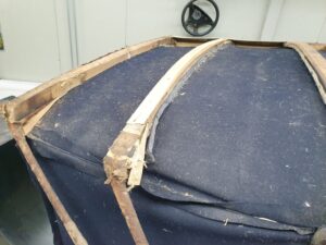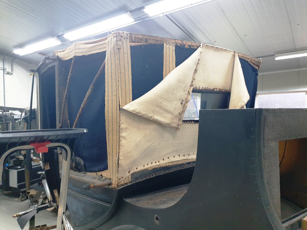 Bij het vervangen van het leer kwamen de Stolks bijzondere, zware ijzeren kapspanten tegen, met een ingebouwde vertrager, zodat de kap tijdens het openen niet abrupt open valt. “We hebben het nooit eerder gezien”, zegt Stolk, “die vertrager was nodig vanwege die zware spanten.”