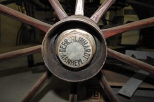 De klanten mogen kiezen uit twee variaties van caoutchouc (zeg maar rubber) om de rijtuigwielen: een rubber band in een ijzeren profiel geperst of een band samengetrokken met twee staalkabels die door de kern van het rubber lopen. Voor beide technieken heeft Mijnhardt de machines in huis.