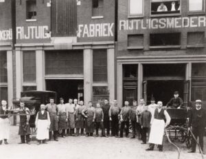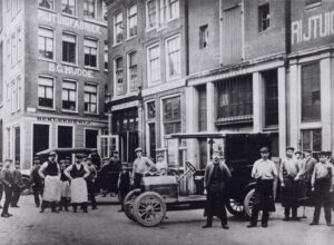 Het personeel poseert aan Spuistraat, rond 1900 (foto Stadsarchief Amsterdam).