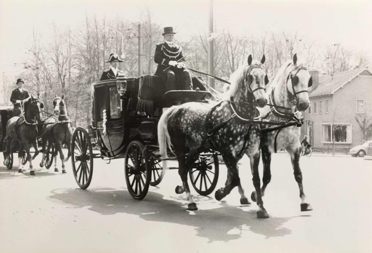 Wanneer het goederenvervoer met de korrewagens wegvalt – zij leggen het af tegen de snellere vrachtwagens – komen er minder paarden op stal. In de Tweede Wereldoorlog raakt de stal verder leeg: de Duitsers vorderen de overige paarden en het enige (bonte) paard dat overblijft voor de trouwcoupé ligt bij de bevrijding dood op de Heerebrug. “Als we als kinderen de korrewagens of de trouwkoetsjes leeg tegen kwamen, mochten we soms meerijden. We speelden ook wel eens verstoppertje in de koetsen in het wagenhuis. Of we gingen met verjaardagen met de Jan Plezier naar Paterswolde. We gingen nooit op vakantie. Daar was geen tijd voor, wel werden er soms in het weekend paarden voor een landauer gespannen en ging het gezin zelf uit rijden. Een feestje! Onderweg lekker een ijsje van De Hoop eten…”, klinkt het als een fijne herinnering. Een broer van de zussen, Jan Kornelis (1940-1962), doorloopt de men-opleiding aan de Reit- und Fahrschule van het Holsteiner Pferdegestüt in Elmshorn in Duitsland. Dat is een degelijke opleiding waar hij volgens de methode van Benno von Achenbach leert rijden: altijd met de leidsels in de linkerhand. Dirk Mekkes, de later bekende tuigpaardrijder en leeftijdgenoot van Jan, leert het op zijn beurt van hem, wanneer hij als zestienjarige koetsier in de stalhouderij komt helpen.