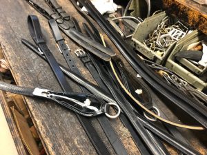 Voor de tuigen zijn geheel nieuwe leidsels gesneden, want een oude leidsel is behoudens de gesp niet bijzonder, maar wel levensgevaarlijk om nog te gebruiken. Wat beslist wel bewaard blijft aan de tuigen is het vroegere lakleder, inmiddels volledig craquelé. Het verschil met hoe het vroeger was is te zien aan een paar zogenaamde ‘lepels’ die nieuw zijn gemaakt met spiegelglad, hoogglanzend lakleer. Het tijdschema voor dit kleine project is niet al te strak, want ambachtelijk werk heeft de tijd nodig.