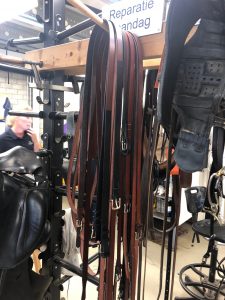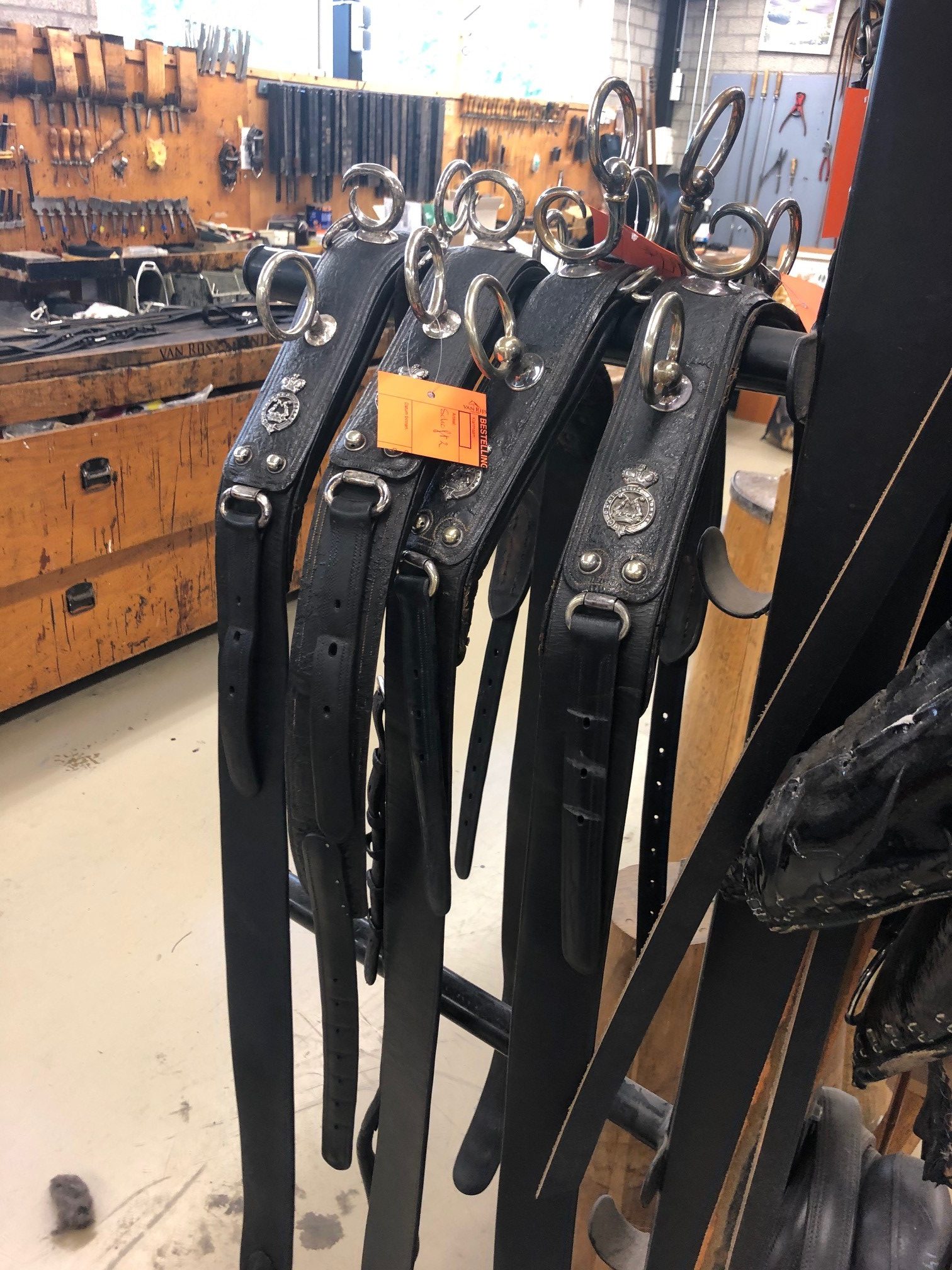 Bij tuigenmakerij Van Rijs in Zevenhuizen werken ze ‘horizontaal’ aan het vierspan- en het tweespantuig van Kasteel Middachten die er ter restauratie zijn, dat wil zeggen alle leidsels in één keer, daarna alle oogkleppen, schoftjes enzovoort. Er dus nog niet een compleet tuig af.